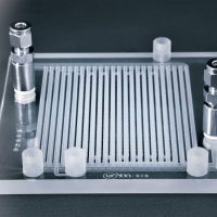 Microreactors of LTF’s HTM series have been developed as an experimental platform. These reactors are available either with or without integrated heat exchangers. The connection is made via 1/4″ UNF 28 bonded glass threads, while the heat exchanger is connected via SWAGELOK fittings.